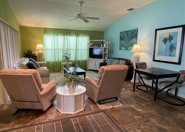 churches, cinemas, festivals, library, live theater, recreation center, restaurants, synagogues, theme parks, winery tours, Satellite / Cable, Television, Air Conditioning, Clothes Dryer, Garage, Heating, Internet, Iron & Board, Linens Provided, Living Room, Towels Provided, Washing Machine, Wifi, Free Wifi, Coffee Maker, Dishes & Utensils, Dishwasher, Kitchen, Microwave, Oven, Refrigerator, Stove, Toaster, Dining Table, antiquing, bird watching, horseback riding, horseshoes, outlet shopping, photography, walking, ATM/bank, fitness center, groceries, hospital, massage therapist, medical services, Downtown, Resort, Bicycles, Lanai / Gazebo, Communal Pool, basketball court, cycling, equestrian events, fishing, freshwater fishing, golf, golf privileges optional, hiking, roller blading, swimming, tennis, children welcome, non smoking only, pets considered, Long-term Renters Welcome, Minimum Age Limit for Renters, Senior Adults Only Community, flexible, recommended, Guests provide their own meals, Housekeeper Optional, Concierge, Away From It All, Family, Sports & Activities, Outdoor lighting, Deadbolt lock on entryway, Smoke detectors, Carbon monoxide detector, Enhanced cleaning practices, Clean with disinfectant, No-contact check-in and check-out, High touch surfaces cleaned with disinfectant, Towels and bedding washed in water that's at least 60sC/140sF, 2 days (48 hours)