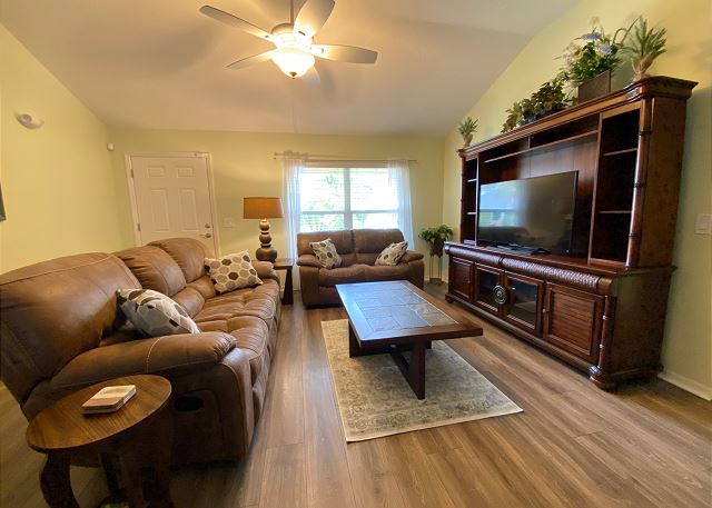 churches, cinemas, library, live theater, recreation center, restaurants, winery tours, Satellite / Cable, Television, Air Conditioning, Clothes Dryer, Garage, Heating, Internet, Iron & Board, Linens Provided, Living Room, Towels Provided, Washing Machine, Coffee Maker, Dishes & Utensils, Dishwasher, Kitchen, Microwave, Oven, Refrigerator, Stove, Toaster, bird watching, horseshoes, photography, walking, ATM/bank, fitness center, groceries, hospital, massage therapist, medical services, Resort, Lanai / Gazebo, basketball court, cycling, fishing, golf, golf privileges optional, swimming, tennis, children welcome, non smoking only, pets not allowed, Minimum Age Limit for Renters, Senior Adults Only Community, Weddings, necessary, Enhanced cleaning practices, Clean with disinfectant, No-contact check-in and check-out, High touch surfaces cleaned with disinfectant, Towels and bedding washed in water that's at least 60sC/140sF, 3 days (72 hours)