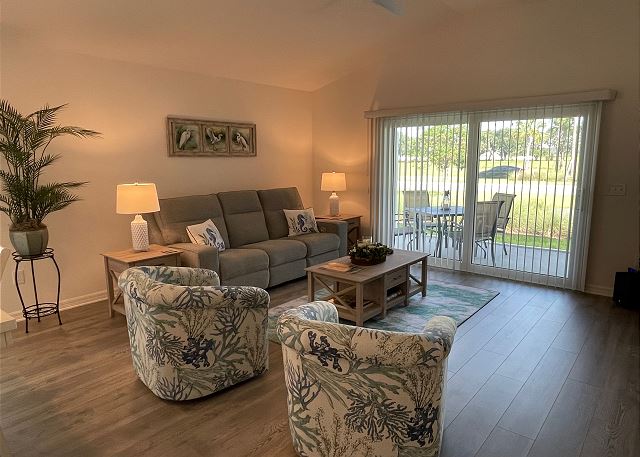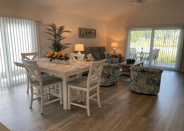 churches, cinemas, festivals, library, live theater, recreation center, restaurants, winery tours, Smart TV, Air Conditioning, Clothes Dryer, Garage, Heating, Internet, Iron & Board, Linens Provided, Living Room, Towels Provided, Washing Machine, Wifi, Free Wifi, Wifi Speed 100+ Mbps, Coffee Maker, Dishes & Utensils, Dishwasher, Ice Maker, Kitchen, Microwave, Oven, Refrigerator, Stove, Toaster, antiquing, bird watching, horseback riding, horseshoes, outlet shopping, photography, walking, ATM/bank, fitness center, groceries, hospital, massage therapist, medical services, Golf Course View, Resort, Water View, Lanai / Gazebo, Communal Pool, basketball court, cycling, equestrian events, fishing, golf, golf privileges optional, swimming, tennis, children welcome, non smoking only, pets not allowed, Long-term Renters Welcome, Minimum Age Limit for Renters, Senior Adults Only Community, flexible, recommended, Housekeeper Optional, Away From It All, Family, Outdoor lighting, Deadbolt lock on entryway, Smoke detectors, Carbon monoxide detector, Fire extinguisher, Enhanced cleaning practices, Clean with disinfectant, No-contact check-in and check-out, High touch surfaces cleaned with disinfectant, Towels and bedding washed in water that's at least 60sC/140sF, 2 days (48 hours)