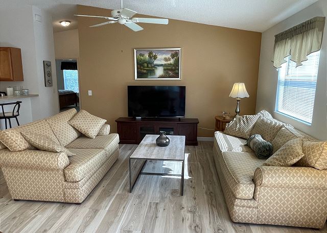 churches, cinemas, festivals, library, live theater, recreation center, restaurants, winery tours, Smart TV, Air Conditioning, Clothes Dryer, Garage, Heating, Internet, Iron & Board, Linens Provided, Living Room, Towels Provided, Washing Machine, Desk, Wifi, Free Wifi, Wifi Speed 250+ Mbps, Desk Chair, Coffee Maker, Dishes & Utensils, Dishwasher, Ice Maker, Kitchen, Microwave, Oven, Refrigerator, Stove, Toaster, Dining Table, bird watching, horseback riding, horseshoes, outlet shopping, photography, walking, ATM/bank, fitness center, groceries, hospital, massage therapist, medical services, Resort, Lanai / Gazebo, Outdoor Grill, Communal Pool, basketball court, cycling, equestrian events, fishing, golf, golf privileges optional, swimming, tennis, children welcome, non smoking only, pets not allowed, Events Allowed, Long-term Renters Welcome, Minimum Age Limit for Renters, flexible, recommended, Guests provide their own meals, Housekeeper Optional, Away From It All, Family, Outdoor lighting, Deadbolt lock on entryway, Smoke detectors, Fire extinguisher, Enhanced cleaning practices, Clean with disinfectant, No-contact check-in and check-out, High touch surfaces cleaned with disinfectant, Towels and bedding washed in water that's at least 60sC/140sF, 2 days (48 hours)